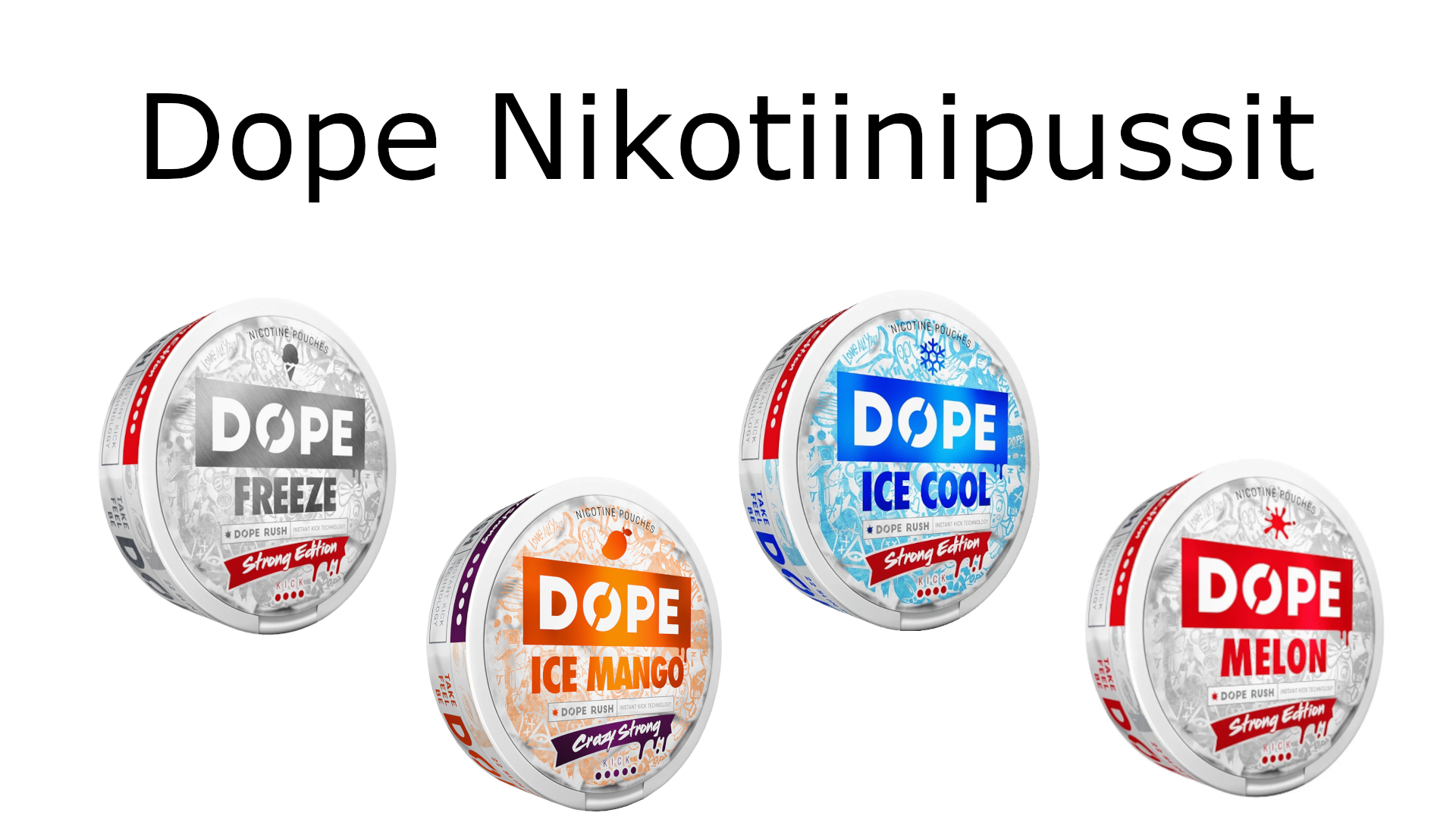 Dope on laadukas ruotsalainen brändi, joka on tunnettu laajasta valikoimasta eri vahvuisia ja makuisia nikotiinipusseja. Dope nikotiinipussit ovat ylistettyjä laajasta maku- ja vahvuusprofiilistaan, sekä näyttävistä pakkauksistaan. Monet nikotiinipussien käyttäjät ovatkin löytäneet suosikkimakunsa juuri Dopen valikoimasta.